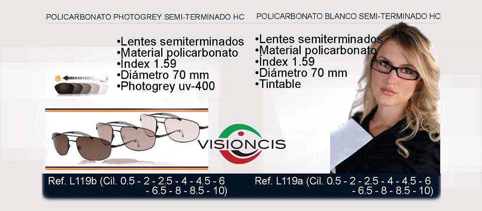 Poseemos en nuestros inventarios lentes de diferentes materiales y con características que resuelven las necesidades de sus clientes. Contamos con graduaciones desde planos hasta cilindros altos.